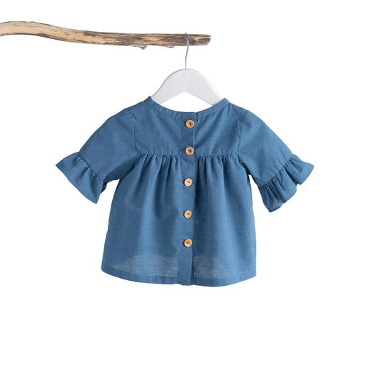 Bella ruffle button girls linen top