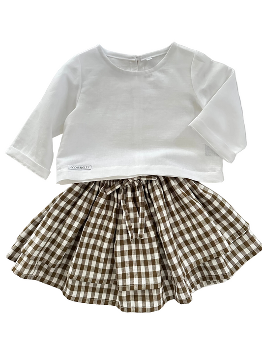 Esther white linen top with Ellie olive check skirt